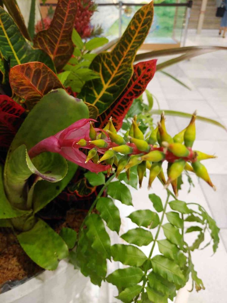 花を抱く苞の先端がインコの嘴のように尖っている🐦