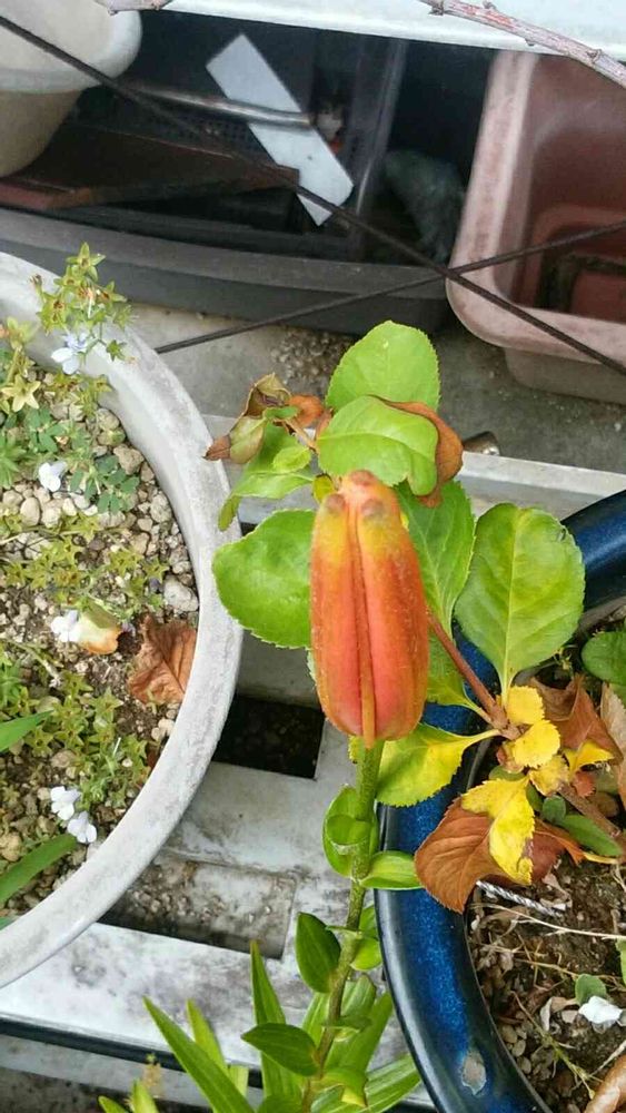 赤い透かしユリのツボミ,花のある暮らし,鉢植え。の投稿画像