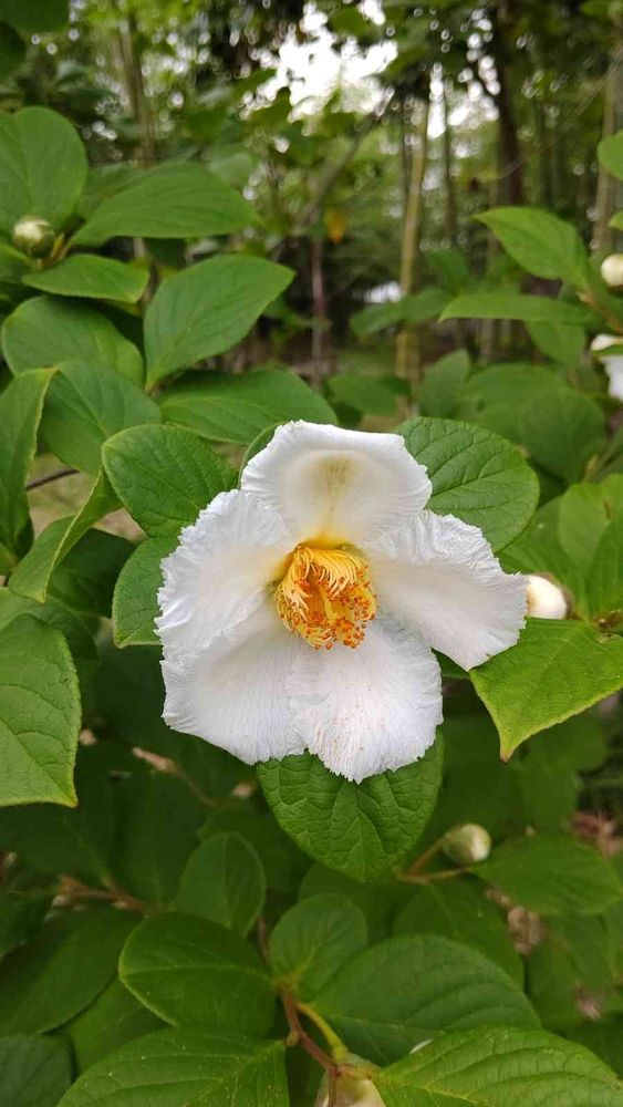 庭に、シャラの花が咲いていました🌼夏ツバキとも言うようですね❗