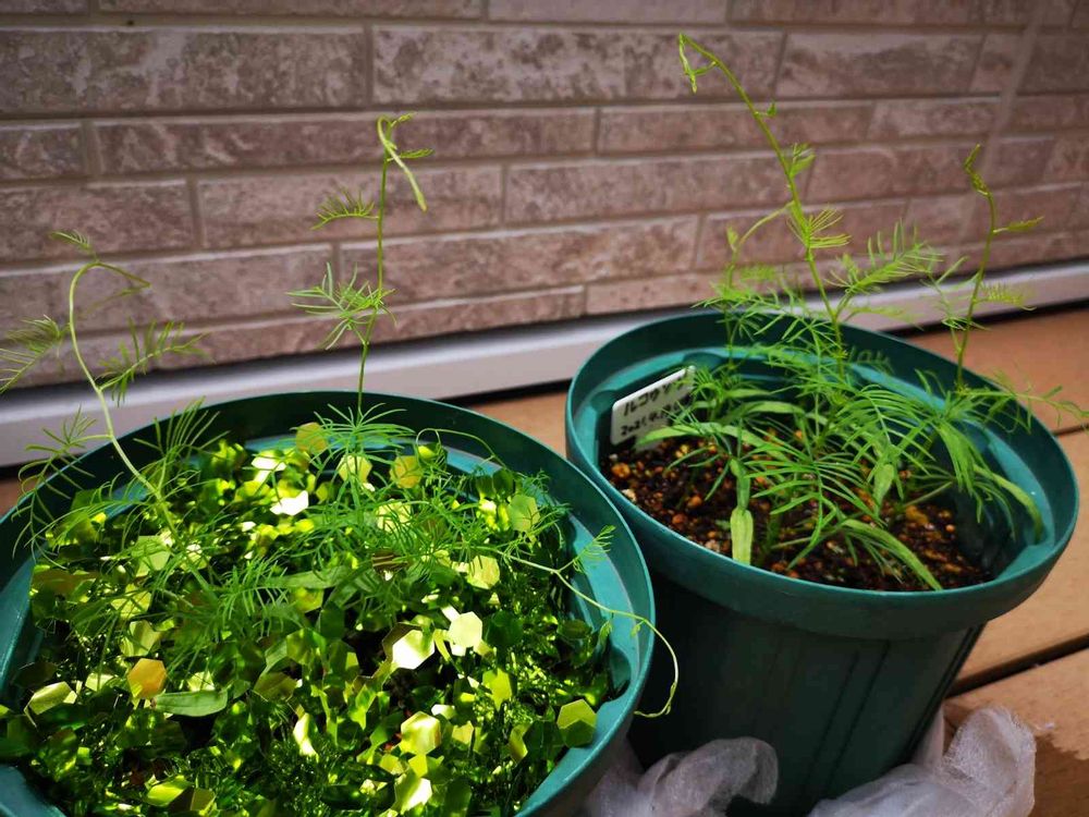 アブラムシ対策になると聞いて…パーティアイテムのキラキラを敷いてみた(笑)