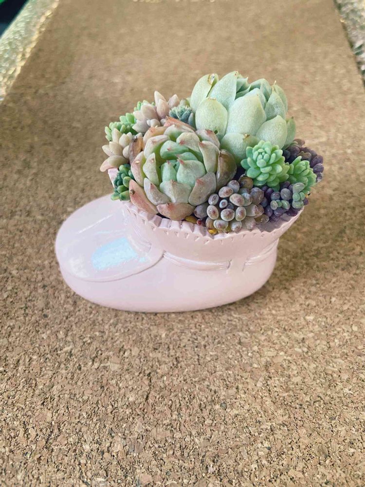 初めて寄せ植え買ったけど、可愛すぎるよね♡この靴のデザインが可愛すぎて鉢単体も購入ー!こんな風に寄せ植え出来る人になりたい‼︎