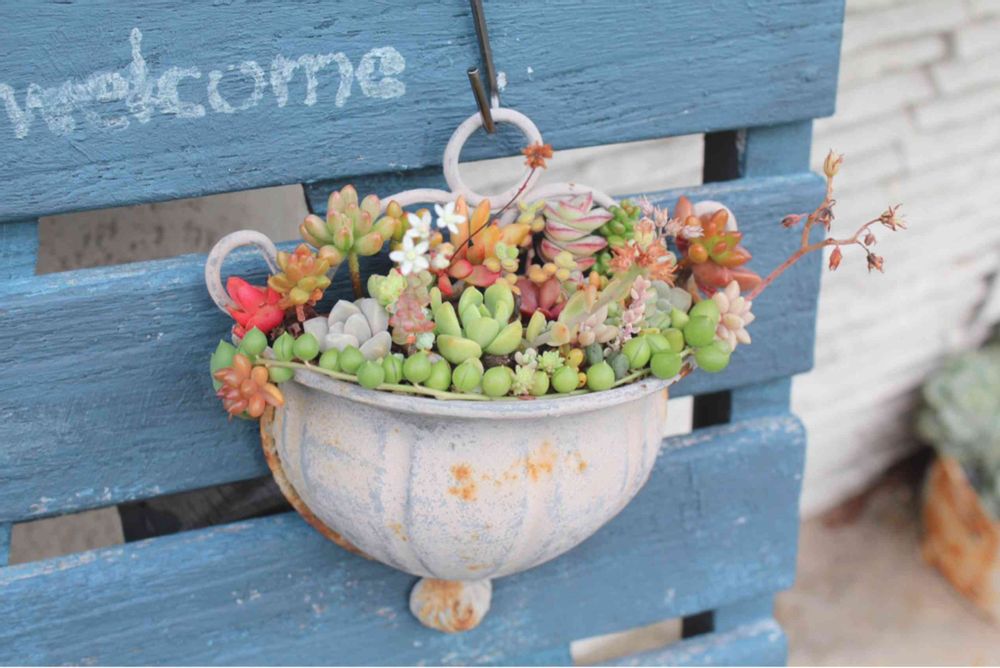 カラフルな多肉ちゃんや丸い玉のような多肉ちゃん白いお花