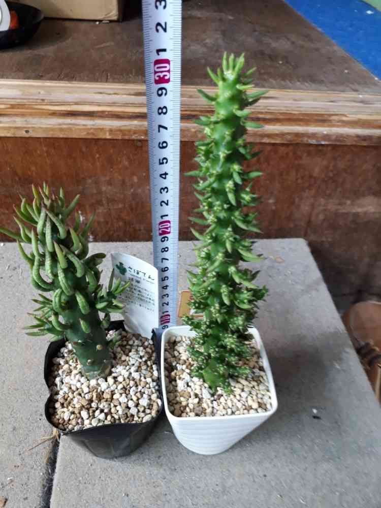 今夜の1枚は、将軍様と🌵姫将軍様です🌵将軍様ポット下から25センチくらい、姫将軍様はポット下から32センチくらいでした😆でも、姫というのがついているのってノーマルサイズより小さいはずではないのでしょうか?この種は特別なのかな?将軍様昨日天気が良かったので、ちょっと水をくれたはずなのに・・・てっぺんがシワシワだ😅