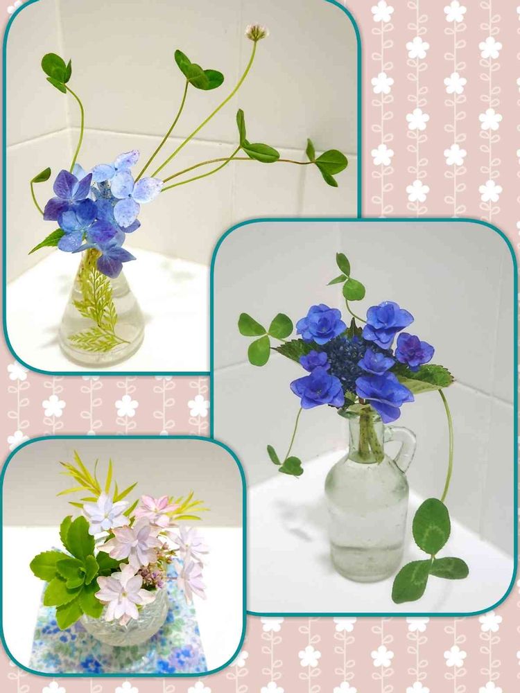 [@id:1935929] さん ピンクの紫陽花は先日生けた💠「隅田の花火」を分解して良いとこ取りしてます😊
