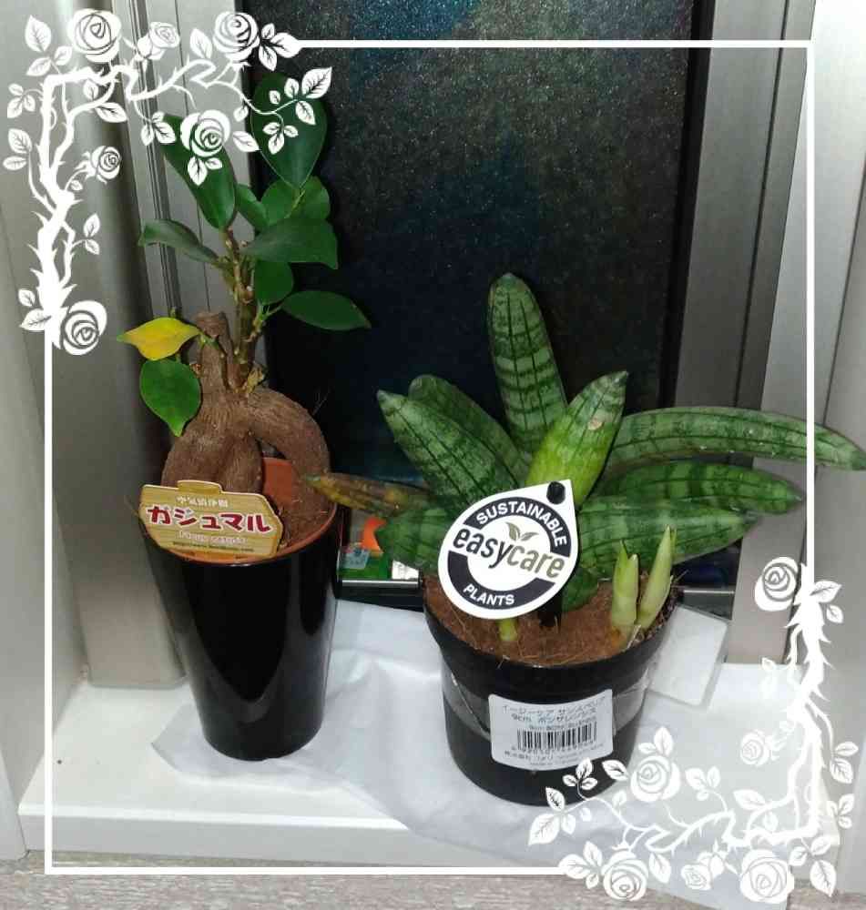 ガジュマルとサンスベリアのちょっと不思議な組み合わせがいいですね💕