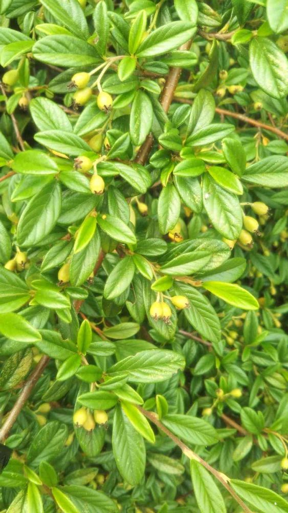 コトネアスターは硬い枝を持ち這うように広がるらしいです。葉に鋸歯(ギザギザ)が無いのが特徴です🤔