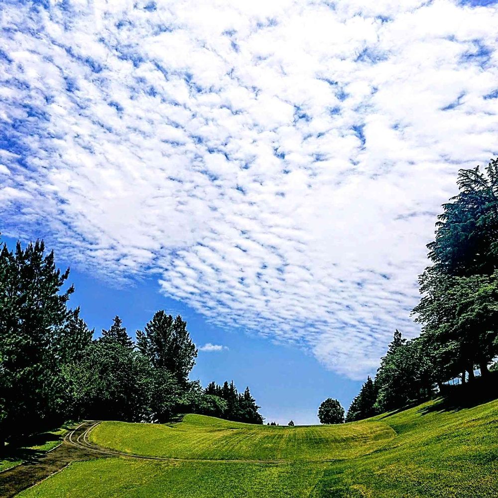 これはゴルフ場⛳️🏌️♀️ですね。みどりと白い雲、