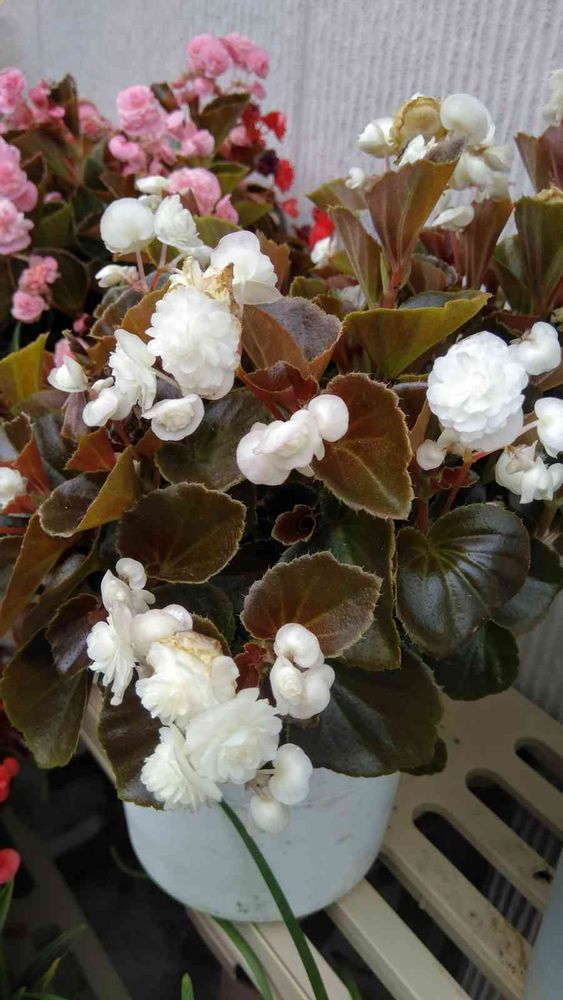 我が家にも赤とピンクの八重咲きベゴニアをご近所さんで頂き挿し木して2年になります。可愛い花ですね。