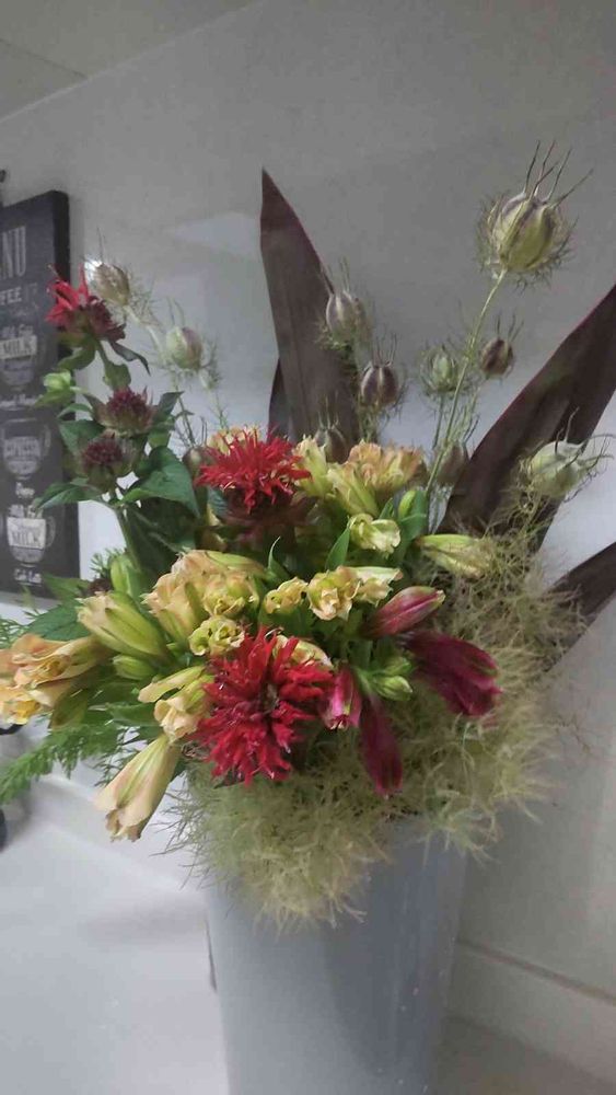 ベルガモットとスモークツリーが一番に目について、それに合わせて、花選びしました➰🎵
