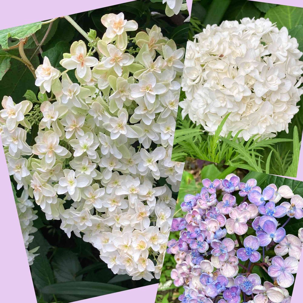 小さな庭,カシワバアジサイ・スノーフレーク,ウズアジサイ(オタフクアジサイ)の投稿画像