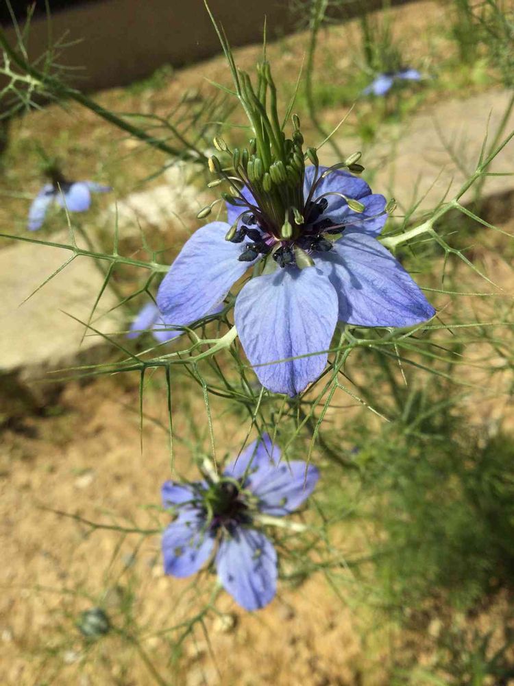 うちのニゲラはお隣の庭からのこぼれ種で咲いています😆