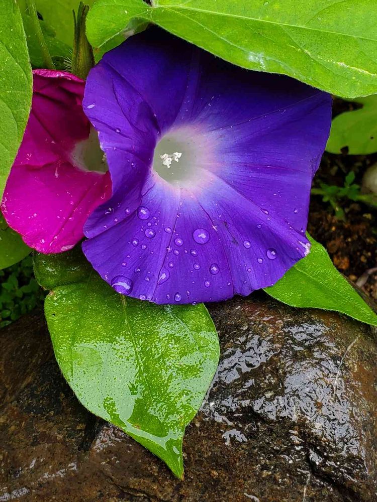 美しい色の朝顔2輪寄り添う様に咲いて心和みます💜💗