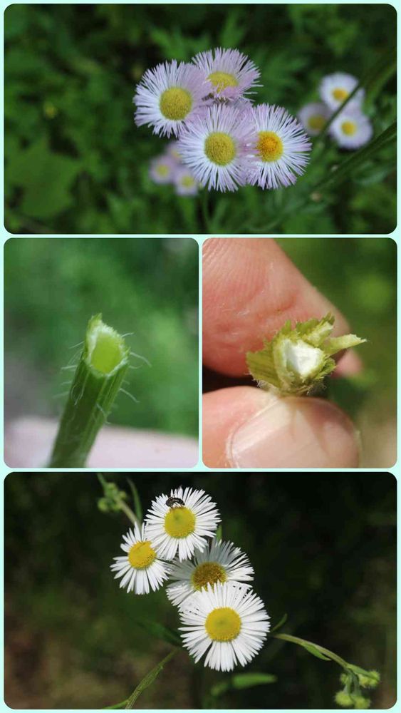 「ヒメジョオンの茎には空洞がないが、ハルジオンの茎には真ん中に空洞がある」(wiki)。