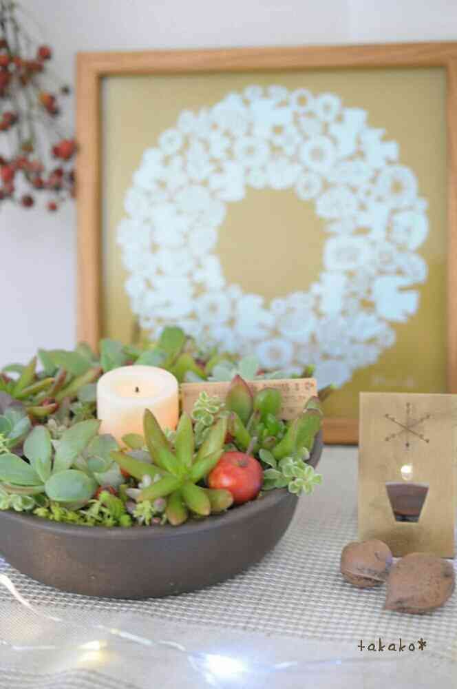 赤い🍎あるだけで、クリスマス🎄の雰囲気✨多肉ちゃんのお鍋寄せも可愛いですね(〃∇〃)💕