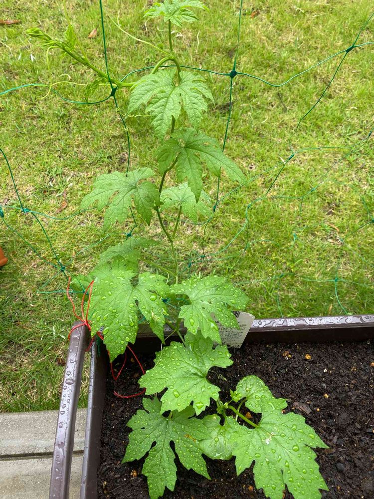 蔓ぜんぜん伸びないので、友達のご主人に種から育ててるの頂いて植えました🌱こちらに期待でーす💁♀️