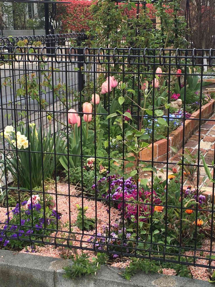 フロントガーデン、チューリップが咲き揃ってきました。今年はチューリップノーマルすぎるものばかりでしたので例年と比べたらショボイチューリップ。でも、バラやクレマチスが咲き出すのが楽しみです