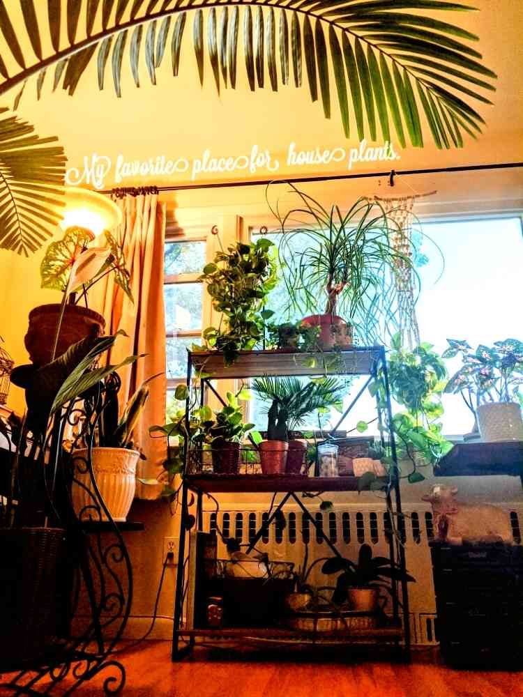 逆光の中、フロアスタンドライトの光と自然光が植物に纏わりつく感じが不思議な空間になってます😌💫🪴
