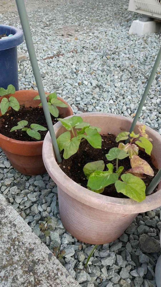 ご近所さんから、「芽が出たからあげるよ!」と鉢ごと朝顔いただきました😁