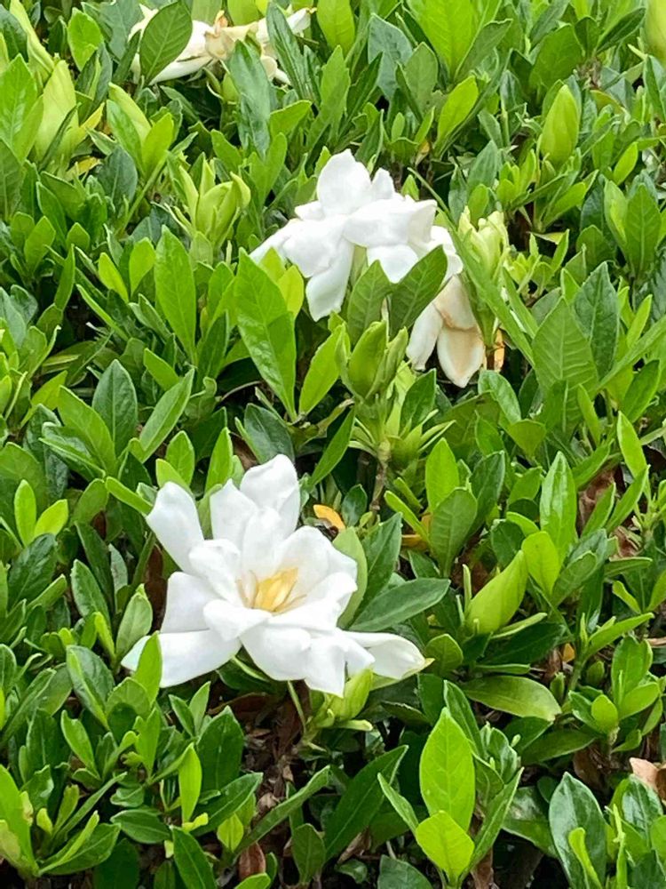 2021.6.14 木曜日に投稿した同じ梔子ですが、風向きのせいか香りを嗅ぐことができました。適度の日差しのお陰か花色も「白」で決まりました🤗
