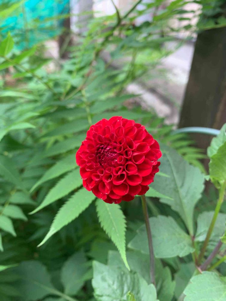 真っ赤なポンポンダリアが咲きました♪