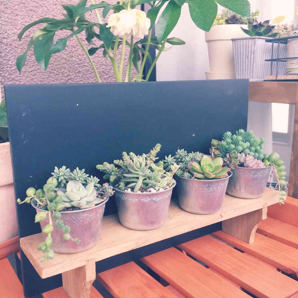 セリアの黒板と壁掛け棚のサイズがピッタリだったので組み合わせて多肉棚に(っ´ω`c)♪♪
