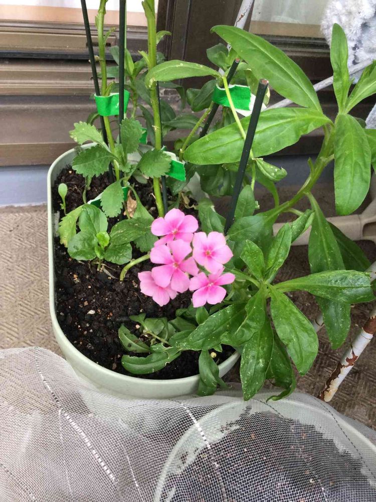 5輪咲きました。まだ、蕾が二つ程ありますがこの咲き方が可愛いな😍〜と思って写しました。🏷日々草