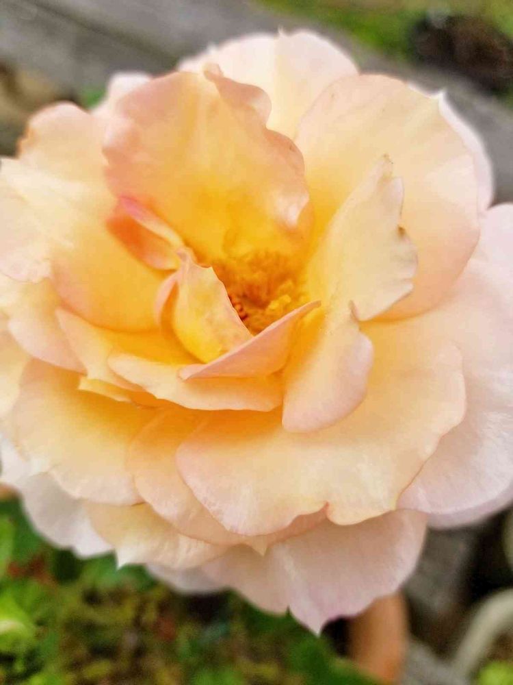 春先新芽カリカリでリセット→黒点コース😭だったので、今年初花😊 特徴は背が40センチと大輪種の割にコンパクト。香りあり。房咲きになりやすい🌹白、淡ピンク、淡オレンジなど様々な色で咲く。スリップスでてるなあ😓 地味に不愉快な虫だよね😣