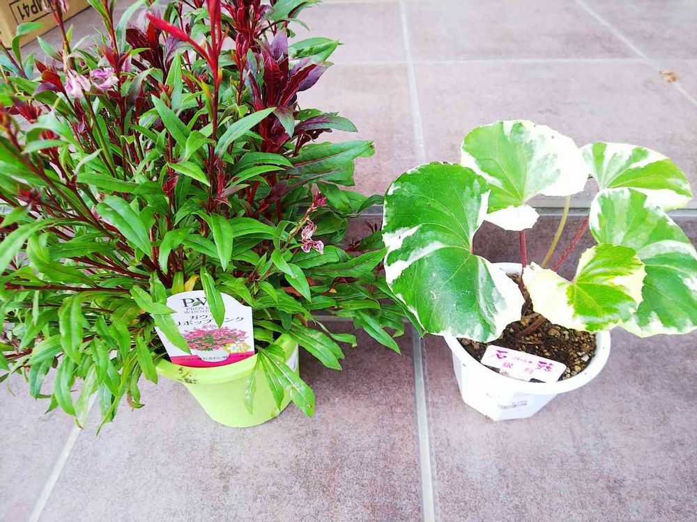 母にプレゼントしたのと同じガウラと、斑入りのツワブキ💕