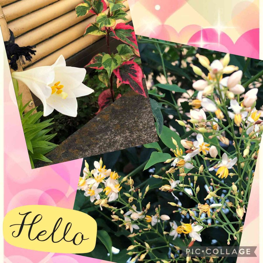 今日もお疲れ様でした❣️先日チビ孫と散歩の途中‥いつも綺麗にされてるお宅の外側に咲いてたお花達に孫はハイタッチしていました💕お花に愛情を持って育ってくれたらいいなぁって思うおばあちゃん😅私でした‥(右は南天のようです💕)