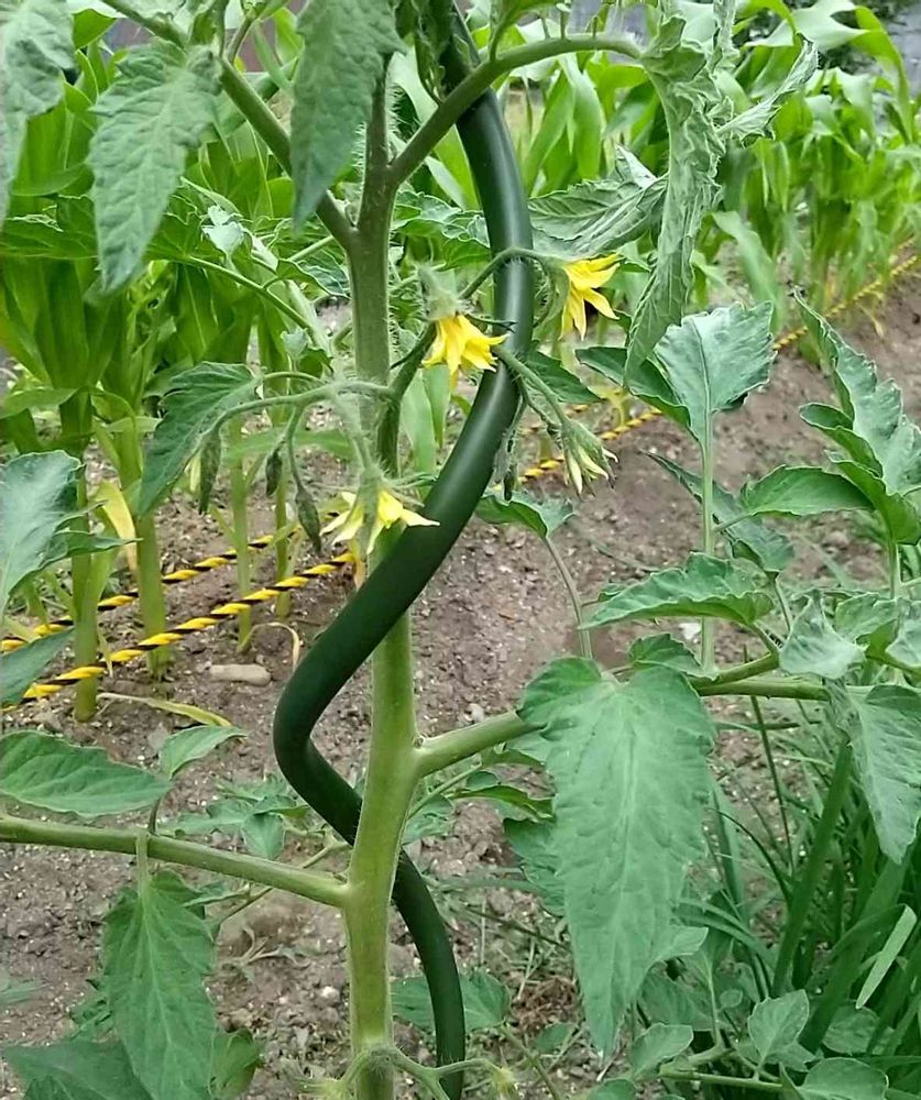 このクネクネ支柱を立てるとトマトの苗は真っ直ぐ育つので楽チンです🎵