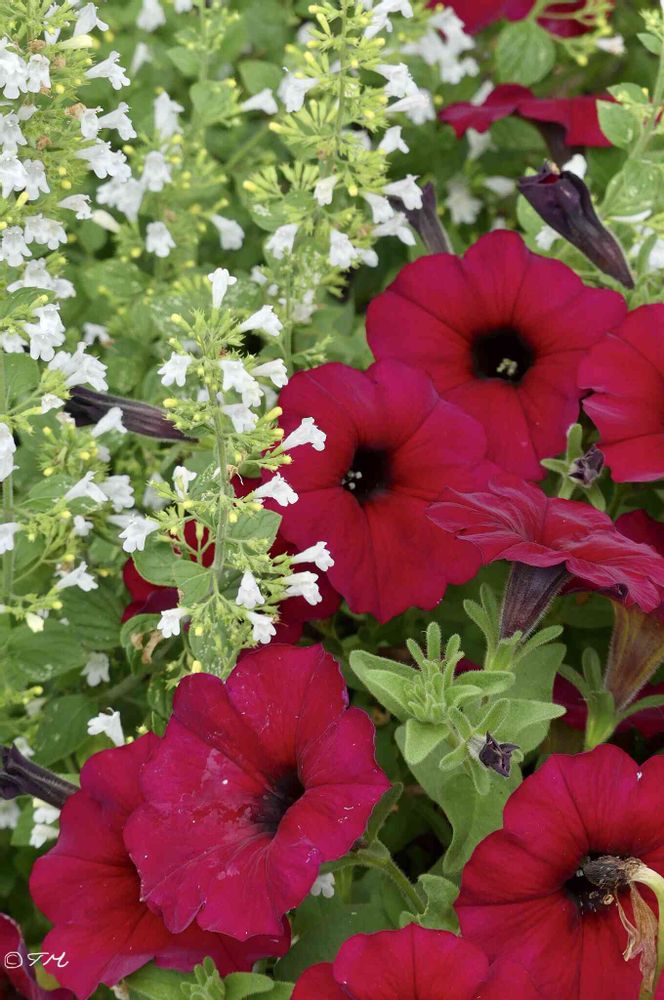 カラミンサとペチュニア ビューティカル ボルドーで紅白!