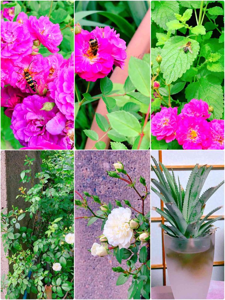 家の小さな庭も小屋の庭でも農薬はほとんど使っていないのですが(いちじくの木ともみじの木だけカミキリムシの幼虫に入られたので)、いろんな虫もやってきます。 ① ミニバラのスイートチャリオットの甘い香りに誘われてやってくる?見たことのない虫。 ② 同じくスイートチャリオットにみつばち?ハナアブ? ③ スイートチャリオットにいたのですが、レモンバームに移ってしまったハナアブ? ④ 今年も大きく育ったミニバラのグリーンアイス。のびのびぐんぐん🎶 ⑤ 同じくグリーンアイス。たくさんの蕾をつけて咲いてくれます。しかも滅多に病気にならない。一年中とにかくよく咲きます。 ⑥ 新しくまたパイナップル🍍を育ててみようと思います。前に育てているのもまだ生きていますが、春先に早く外に出してしまってかなり葉っぱにダメージが😱 でもまだ全部枯れていないようなのでそのまま様子見です😅