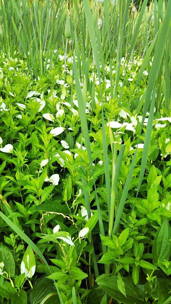 私の家の敷地の端っこに半夏生が生えています。昔お隣の畑で家庭菜園をしてた方のものが敷地内へおじゃまんぼしてきたものです。涼しげですよね😊