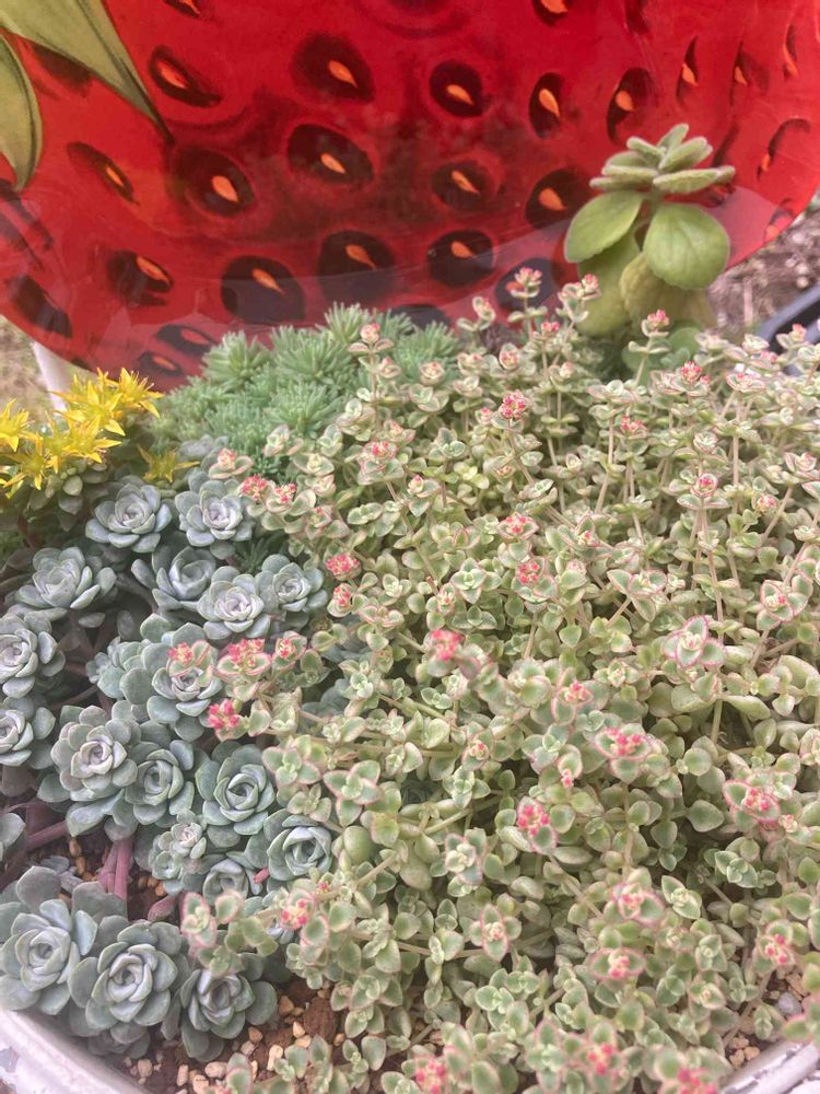 白雪ミセバヤ、斑入りパリダムと植えたはずが~おひとり🤣アロマティカス🍀お邪魔してるし(*≧艸≦)ププッ