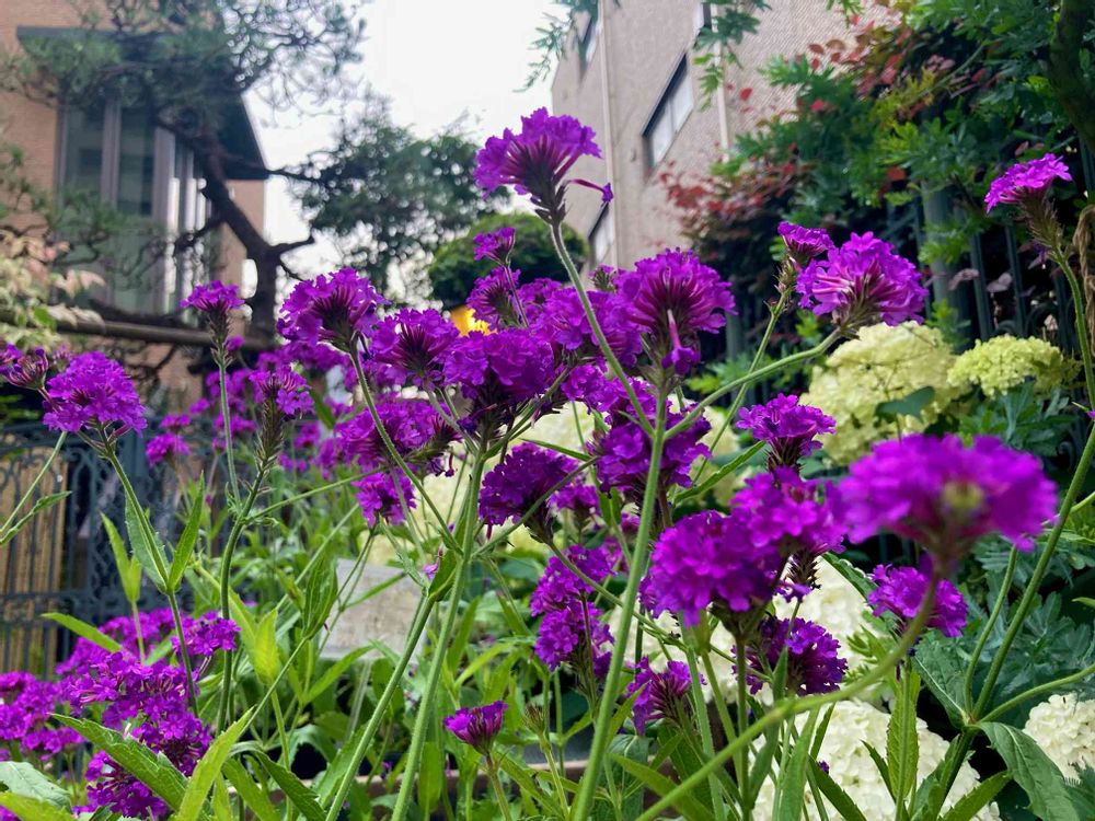 今日のお花は宿根バーベナ、花言葉は魅惑です。もう遅いかもしれませんが魅惑の中年を目指しています。