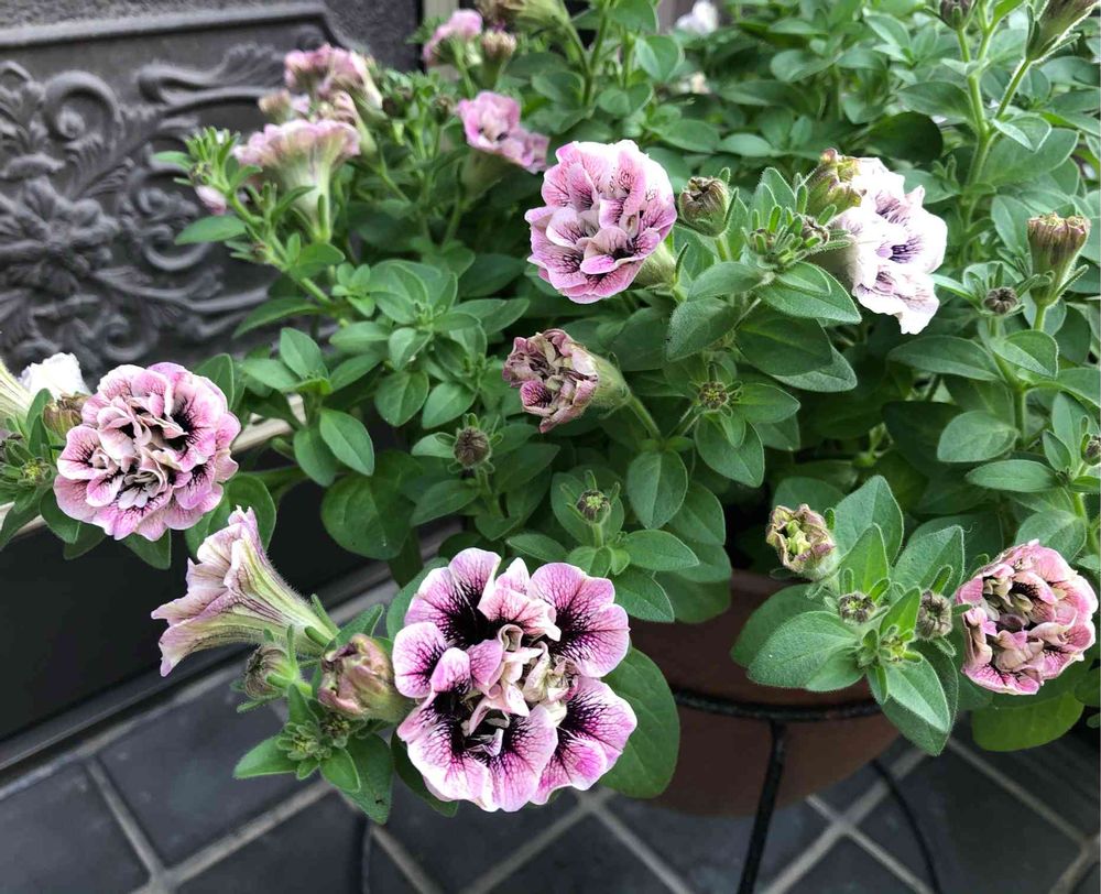 くすんだピンクにベインの入った小輪のペチュニア🌸