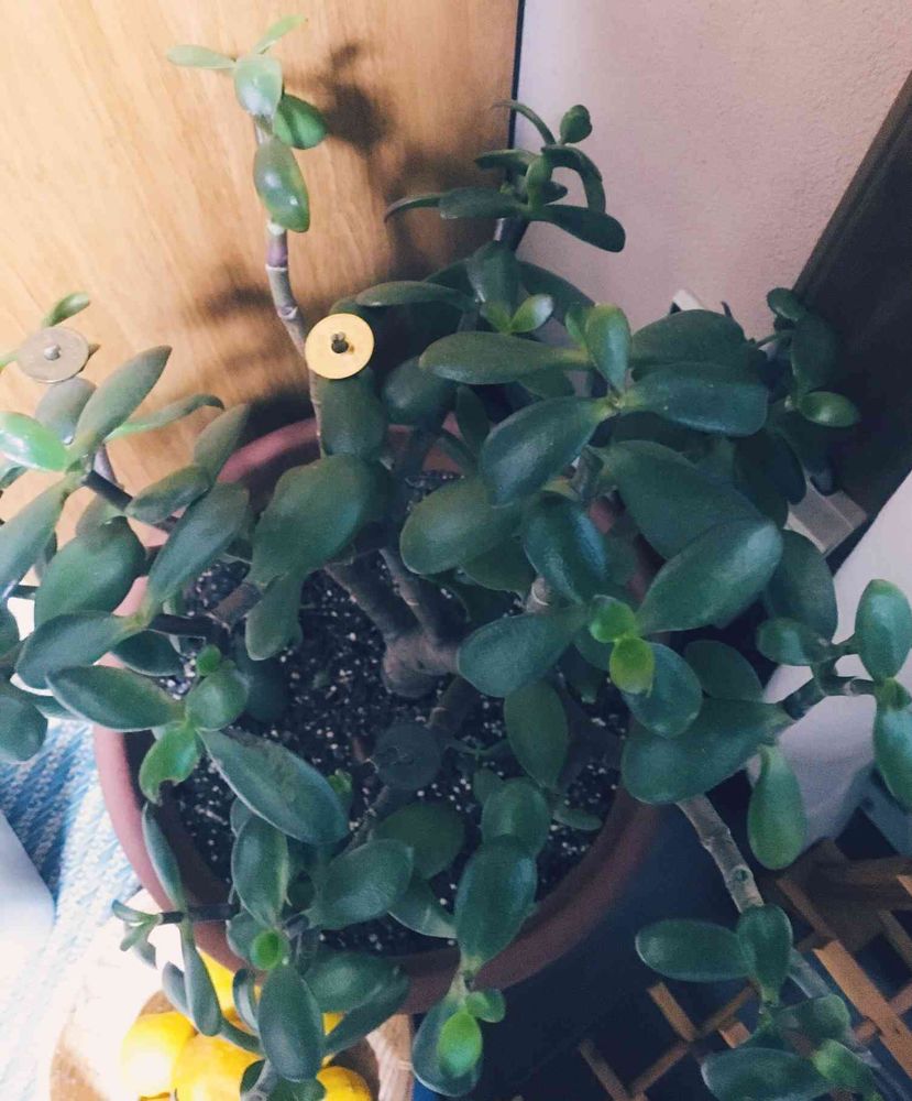 天国のおじいちゃんが大切に育ててた。金のなる木、私が引き継ぎ新しい五円玉付けました(*´꒳`*)