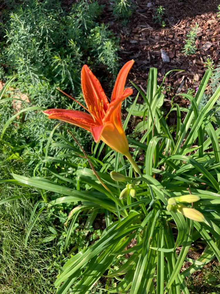 去年いただいた株からオレンジ色の綺麗なデイリリーが咲きました🧡名前の通り1日でお花はお終いですが次々と蕾が上がってきています。