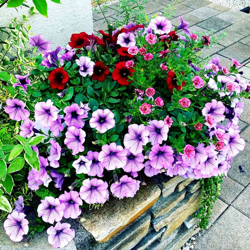 満開のサフィニアラベンダーレース、JAPANレッド、八重咲きのカリブラコア♪♪