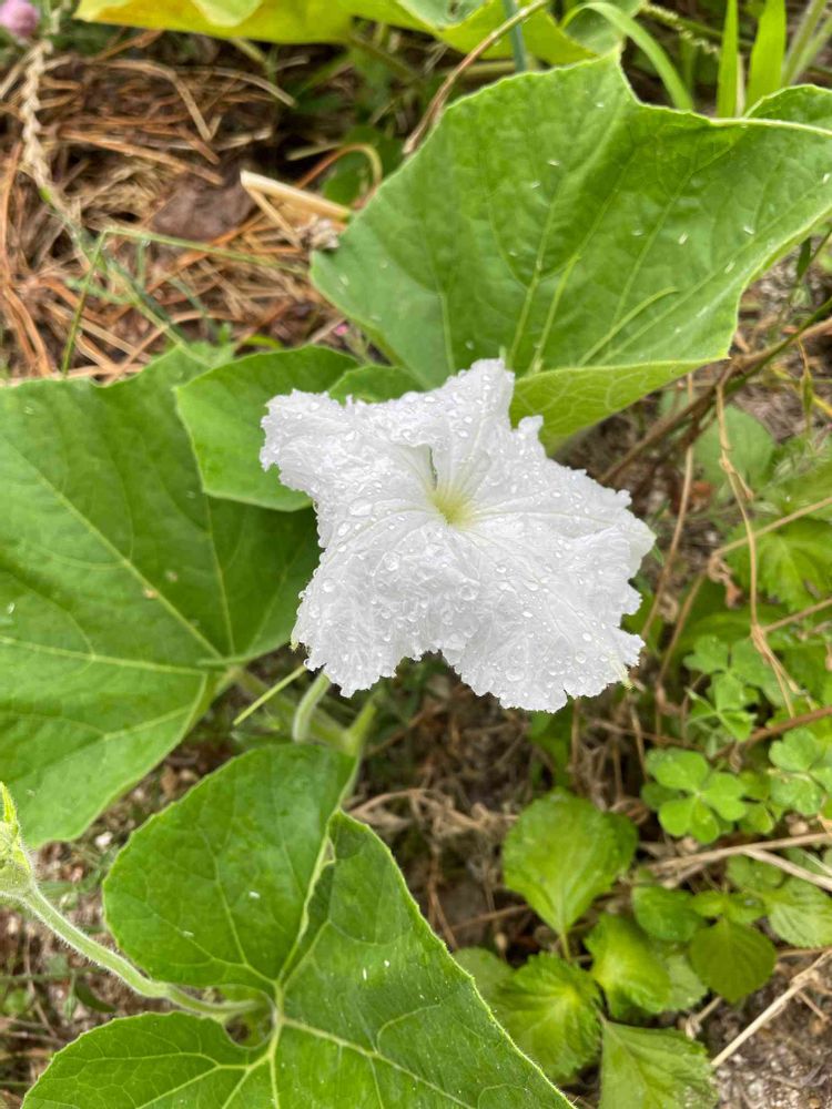 スイカコーナーで、同じ苗を2つ買ったのになんだか違う…そういえば購入時になんか葉っぱちょっと違う気がするけど気のせいかな〜と思ったのを思い出しました。ひとつはスイカお馴染みの黄色い花をつけて、もうひとつは白い花でした