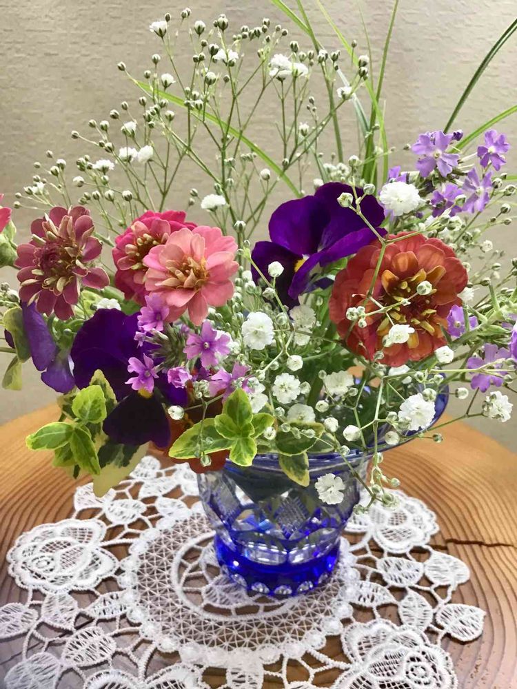 はい、ちょっと 庭の 花🌸を 集めてみました❗️ そして、この花瓶に