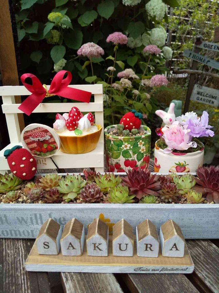 わぁ❣️✨ いちごづくしでテンション上がっちゃう😃🍓💕 センペルもりもりで羨ましい😆💓 うちのは小さいまんま(*ε*) ローズセダムは葉の縁がお花みたいな形で可愛いですよね(*˘︶˘*).。.:*♡ 今の時期はすぐ根っこ出そう😉