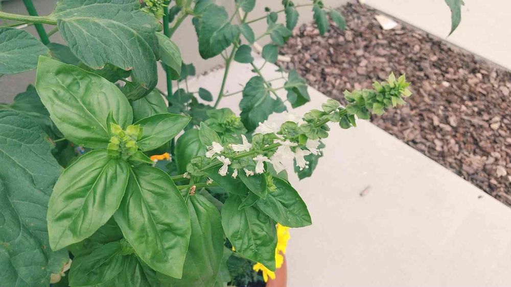 ちょっと見ない間に、バジルに花が咲いちゃった😂