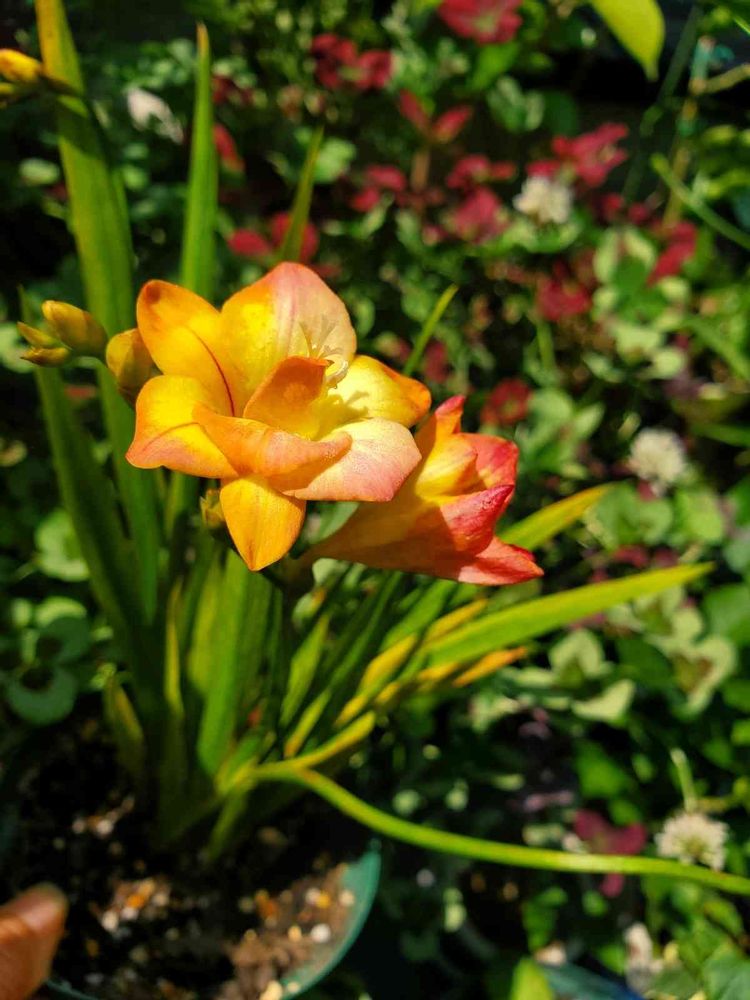 バルコニー/ベランダ,ニューダブルフリージア ピーチクイーンの投稿画像