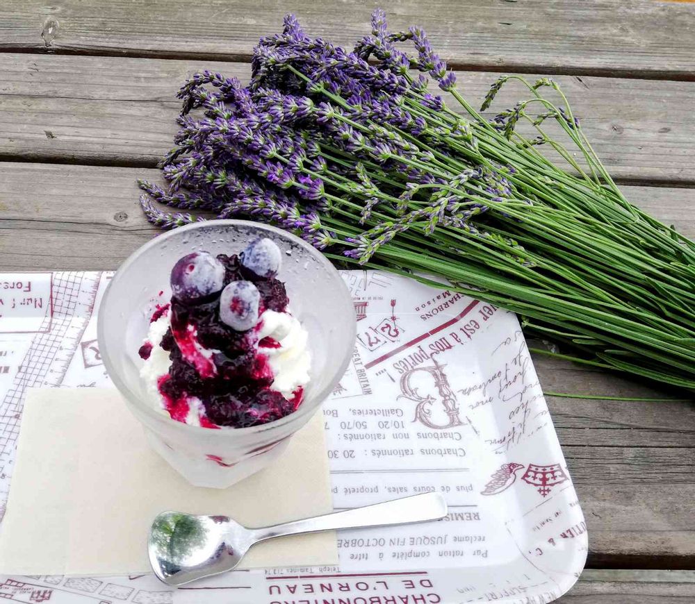 恒例の自家製ブルーベリー🥤ジュースは冬の雪の影響でこちらも遅めで無し😭→😊でもアイス🍦にトッピングの冷凍ブルーベリー&ブルーベリーソースは自家製とのこと😋💕