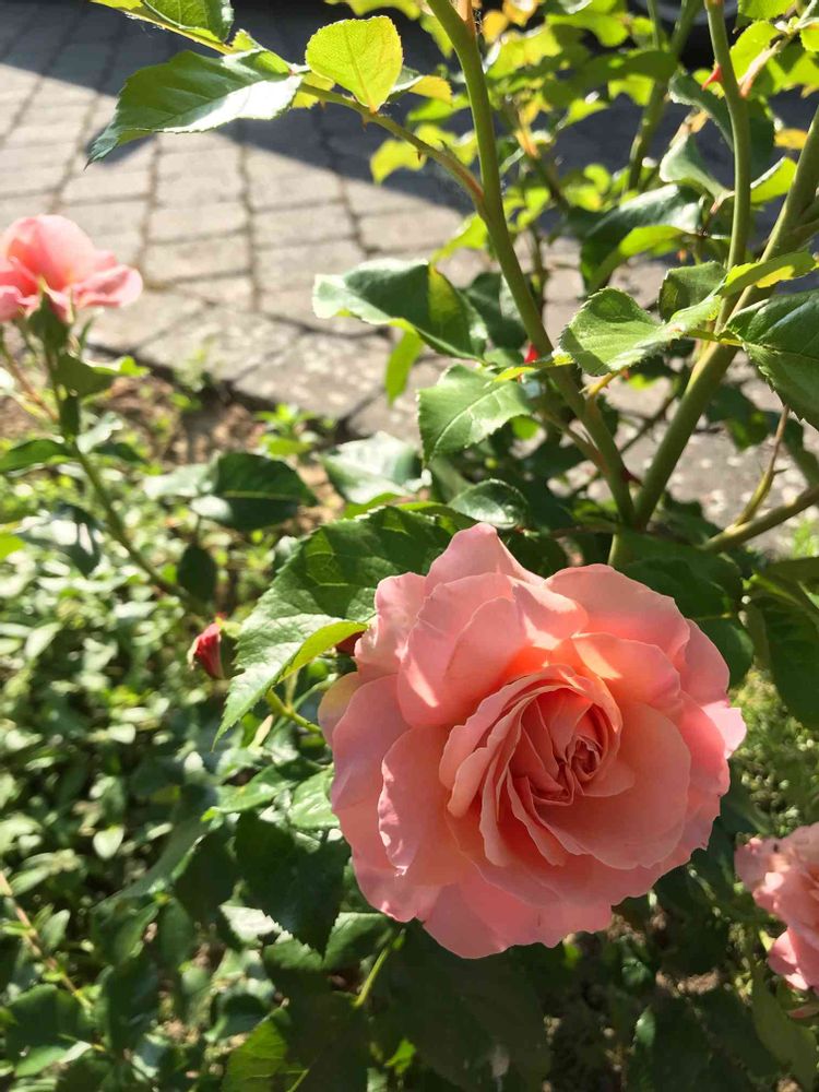 メイラブも咲いてきました。数年前からの薔薇で そのサーモンピンクがなんとも優しい花です☺️