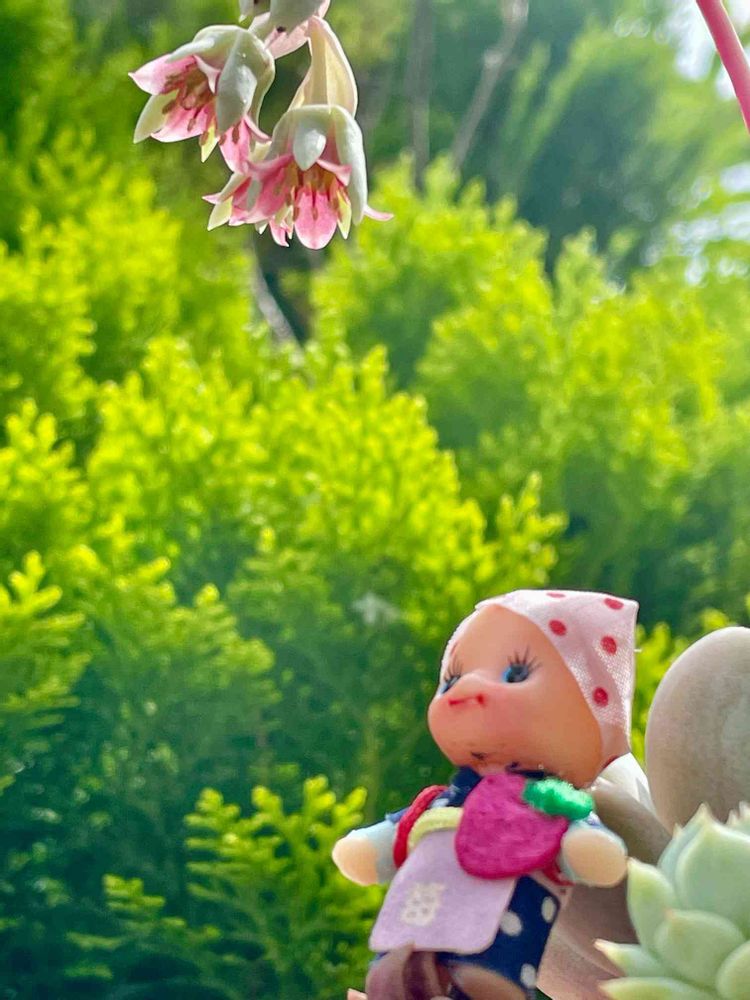 月美人の花芽を見つめるいちごキュピちゃん♥︎∗*゚