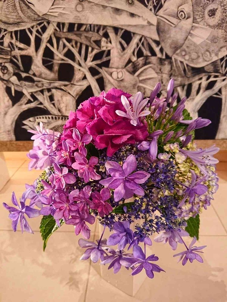 紫陽花はぎゅうぎゅう入れても形が決まるので大好きです🙌💠☂️