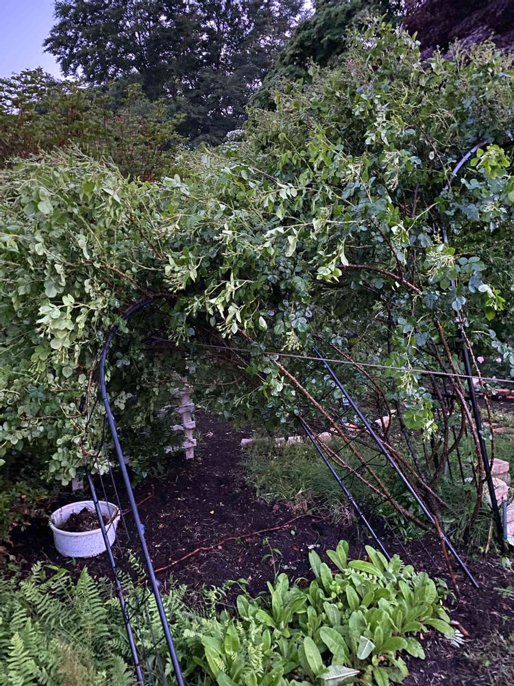昨日の嵐に薔薇のアーチが倒れてしまいました😭もっと強化しておくべきでした‼️