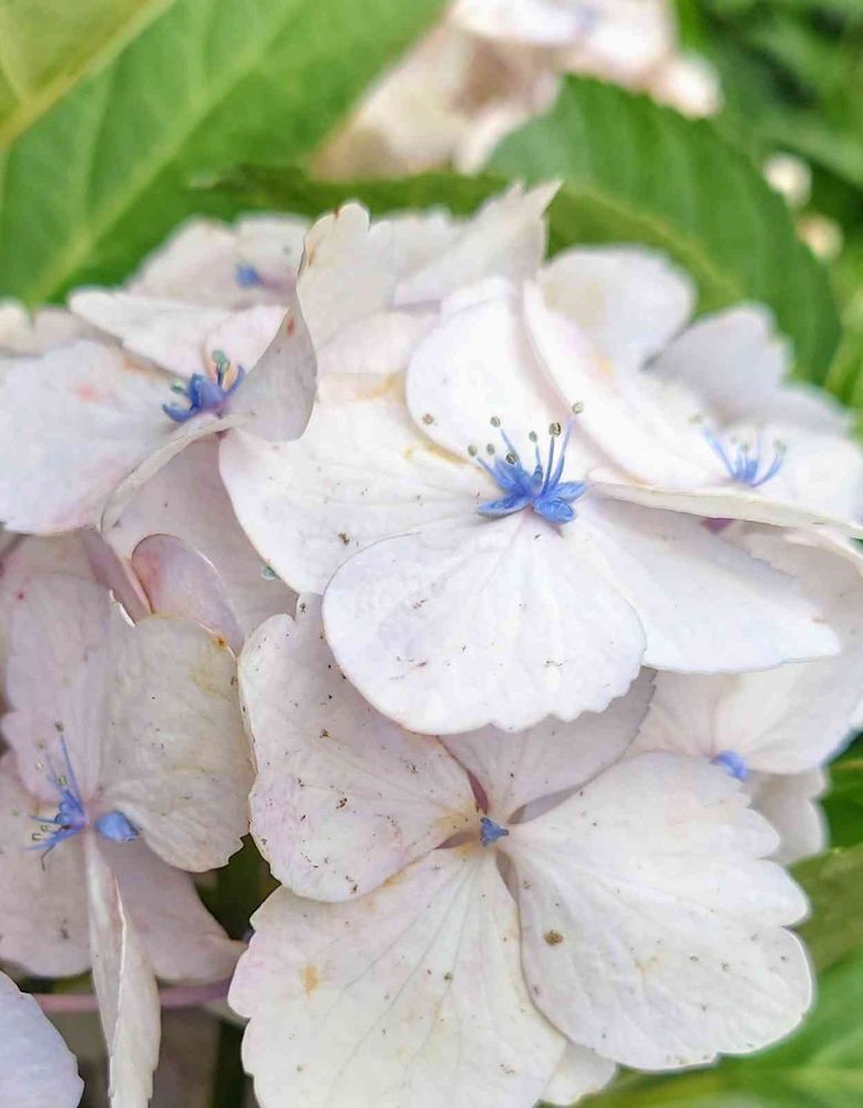白い山紫陽花に青い しべ❗